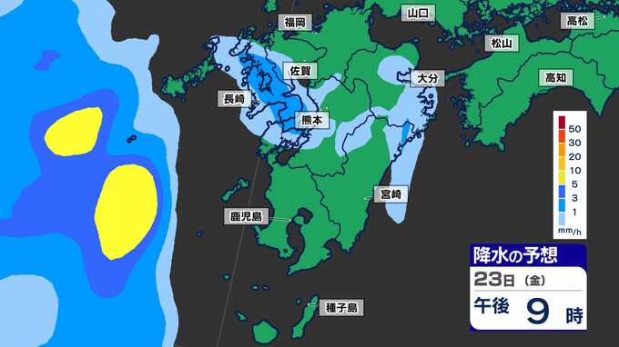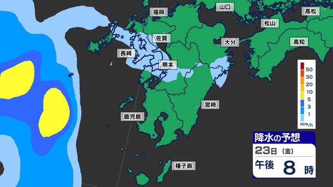 【雨雲接近 警報級大雨のおそれ】福岡県も「大雨警報」の可能性高い 福岡・熊本120ミリ 鹿児島180ミリ 気象台発表「大雨に関する気象情報」詳しく【雨シミュレーション23日(金)~24日(土)】 2025年5月23日(金) 20:00 国内 天気 雨のシミュレーション23日(金)~24日(土) 雨雲接近中です。23日(金)夜、雨雲がかかり始め、24日(土)になると活発な雨雲が、次々と九州全域で予想されています。雨のシミュレーションは、画像で確認できます。