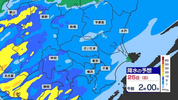 25日(日)雨のシミュレーション〈午前5時以降〉