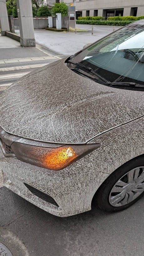 鹿児島市鴨池の県庁付近では、白い車が灰色に見えるほどの「灰雨」となりました。