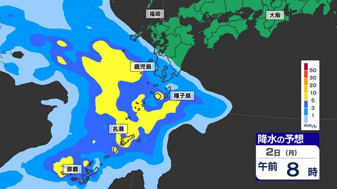 【鹿児島 前線通過】警報級大雨のおそれ 2日(月)は気温上がらない 薩摩大隅 20℃前後の最高気温【雨のシミュレーション2日(月)~3日(火)】あすは傘と上着を持って 2025年6月1日(日) 19:00 国内 天気 雨のシミュレーション2日(月)~3日(火) 奄美地方はすでに雨が降っており、種子屋久地方も2日(月)明け方から、薩摩大隅も2日(月)朝から雨になりそうです。雨のシミュレーションは、画像で確認できます。