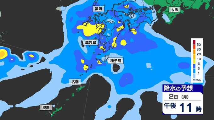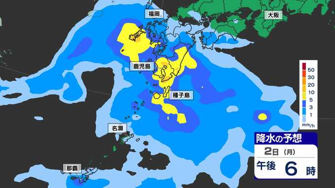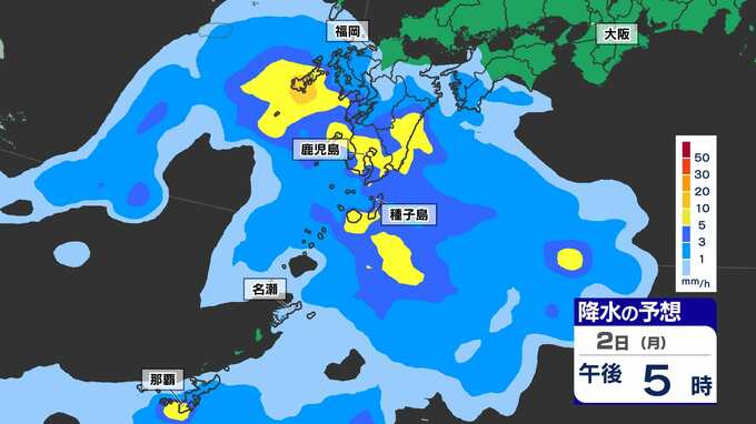 【鹿児島 前線通過】警報級大雨のおそれ 2日(月)は気温上がらない 薩摩大隅 20℃前後の最高気温【雨のシミュレーション2日(月)~3日(火)】あすは傘と上着を持って