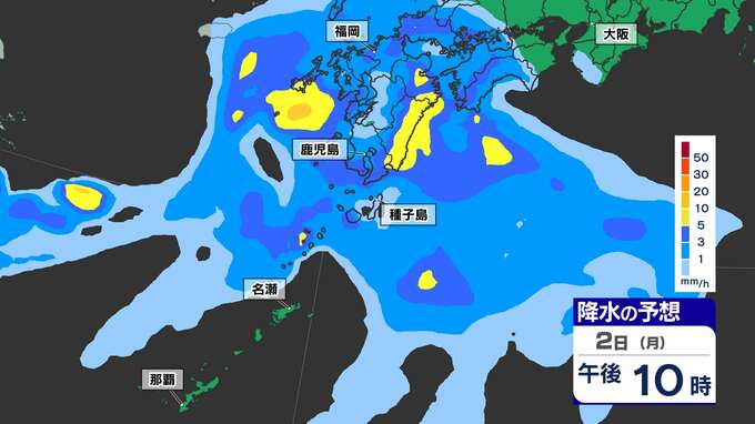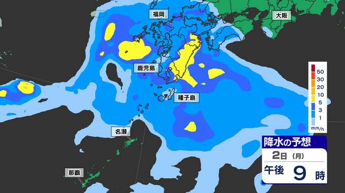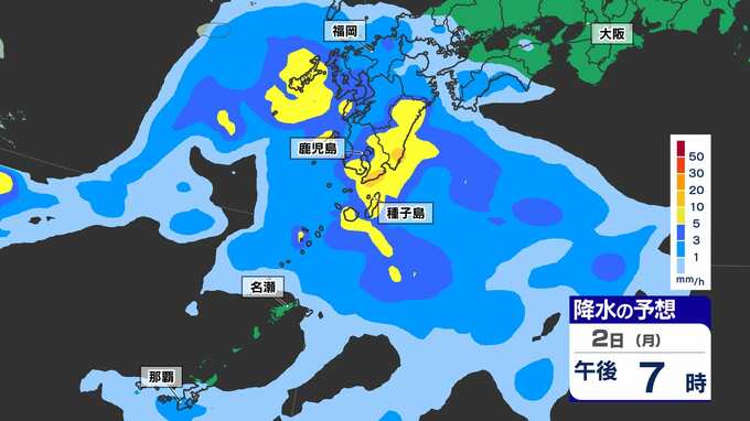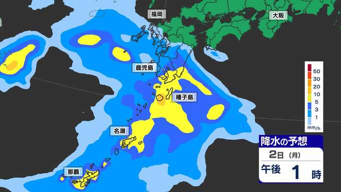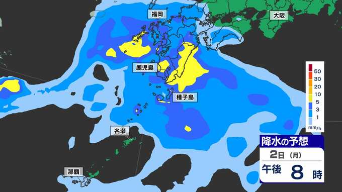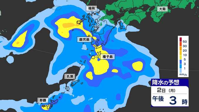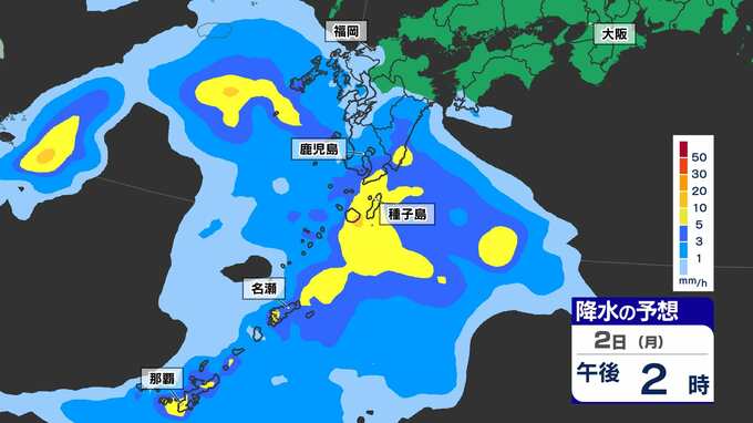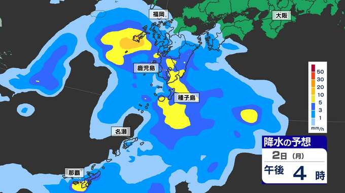3. 【鹿児島 前線通過】警報級大雨のおそれ 2日(月)は気温上がらない 薩摩大隅 20℃前後の最高気温【雨のシミュレーション2日(月)~3日(火)】あすは傘と上着を持って