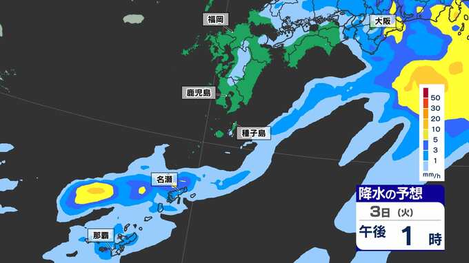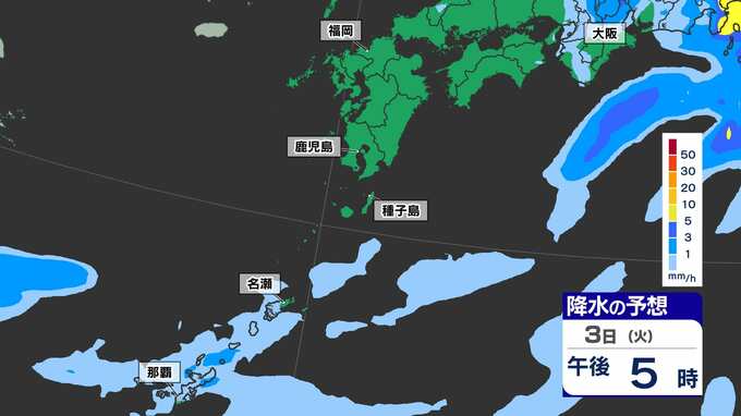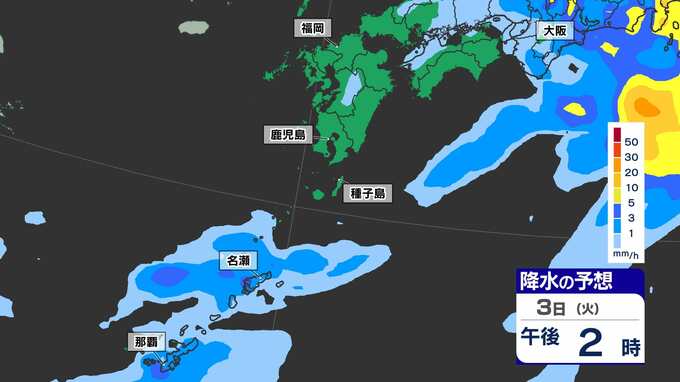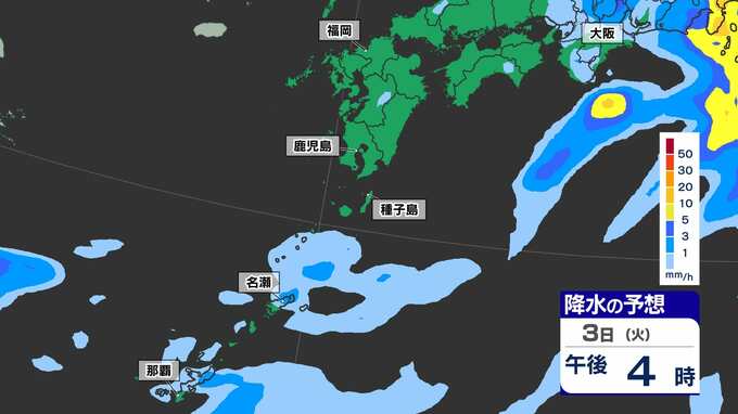 3. 【鹿児島 前線通過】警報級大雨のおそれ 2日(月)は気温上がらない 薩摩大隅 20℃前後の最高気温【雨のシミュレーション2日(月)~3日(火)】あすは傘と上着を持って