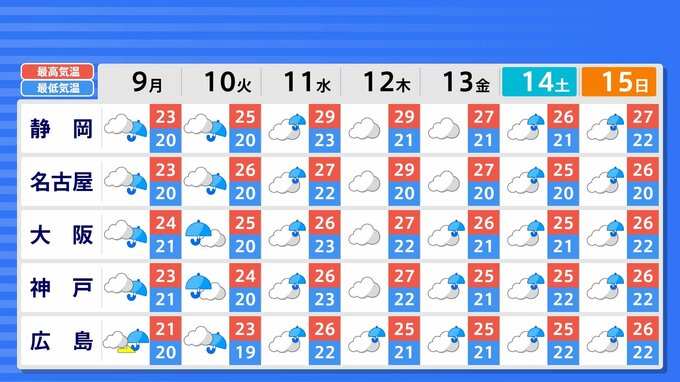 【東京 大阪 名古屋 梅雨入りは? あすから雨の予報 】九州北部と四国「梅雨入り」 沖縄は統計史上も最も早い「梅雨明け」【雨のシミュレーション8日(日)~13日(金)】雨はいつから 大雨は? 2025年6月8日(日) 15:00 国内 天気 週間予報〈東京・大阪・名古屋など〉 関東地方・近畿地方・東海地方・中国地方・北陸地方の週間予報では、北陸地方を除き、9日(月)から晴れのマークはなく曇りや雨の予報が続きます。画像で確認できます。