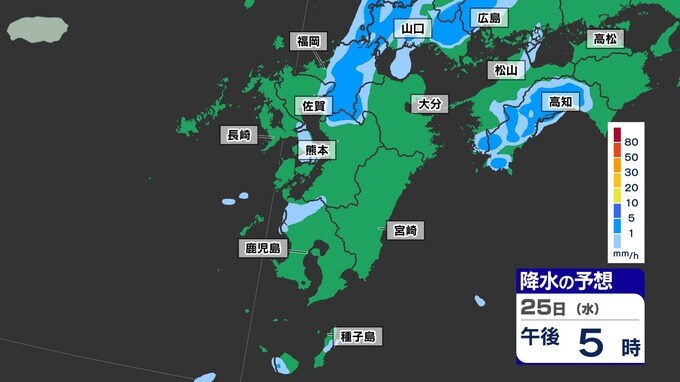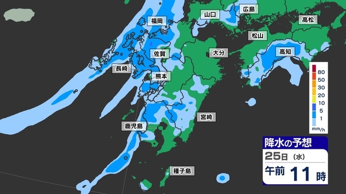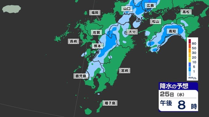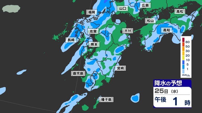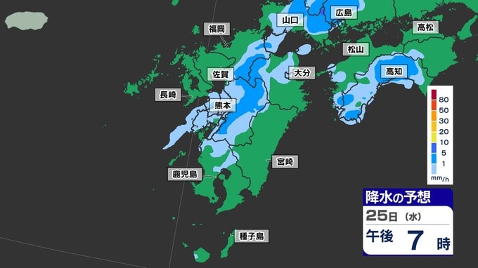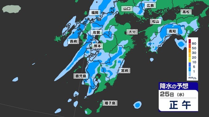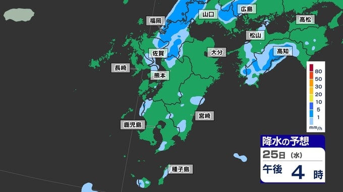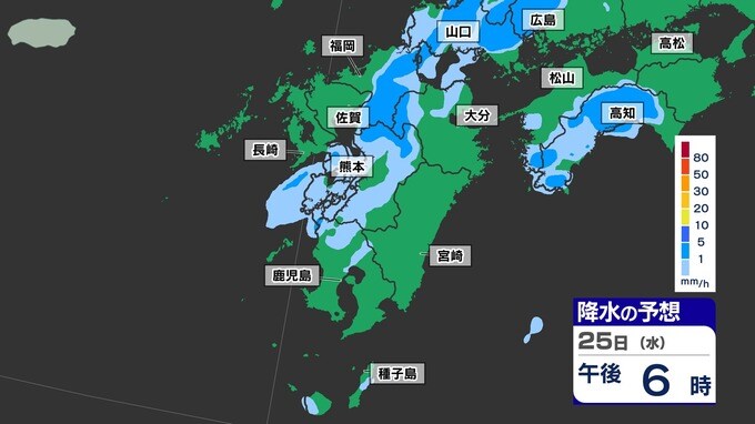 【梅雨前線 通過】福岡80ミリ 長崎150ミリ 鹿児島80ミリ 雷を伴った激しい雨【雨と発雷確率のシミュレーション24日(火)~25日(水)】福岡・佐賀・長崎・大分・熊本・宮崎・鹿児島