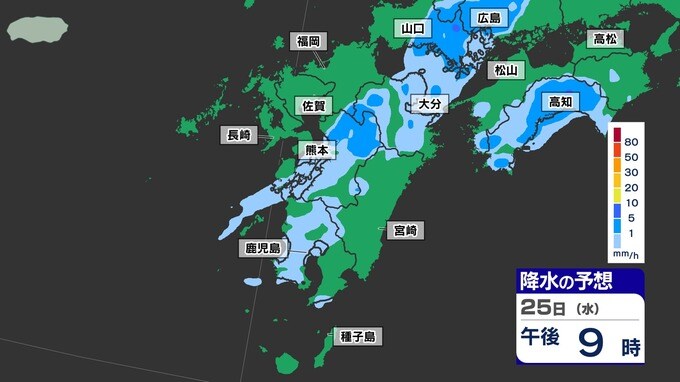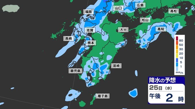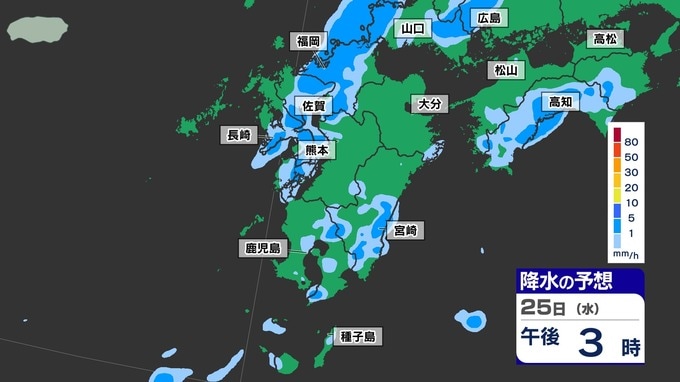 3. 【梅雨前線 通過】福岡80ミリ 長崎150ミリ 鹿児島80ミリ 雷を伴った激しい雨【雨と発雷確率のシミュレーション24日(火)~25日(水)】福岡・佐賀・長崎・大分・熊本・宮崎・鹿児島