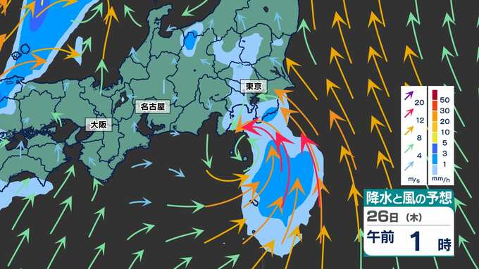 【東京首都圏 熱帯低気圧接近】26日(木)最接近 近畿・東海も大気の状態不安定【雨・風・発雷確率シミュレーション25日(水)26日(木)・警報の可能性がある地域は】関東・東海・近畿 2025年6月25日(水) 13:00 国内 天気