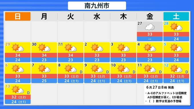【九州南部 梅雨明け】観測史上2番目に早く 6月の梅雨明けは70年ぶり 鹿児島県全43市町村 16日間予報【熱中症注意】