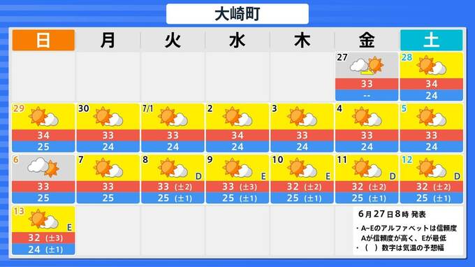 【九州南部 梅雨明け】観測史上2番目に早く 6月の梅雨明けは70年ぶり 鹿児島県全43市町村 16日間予報【熱中症注意】
