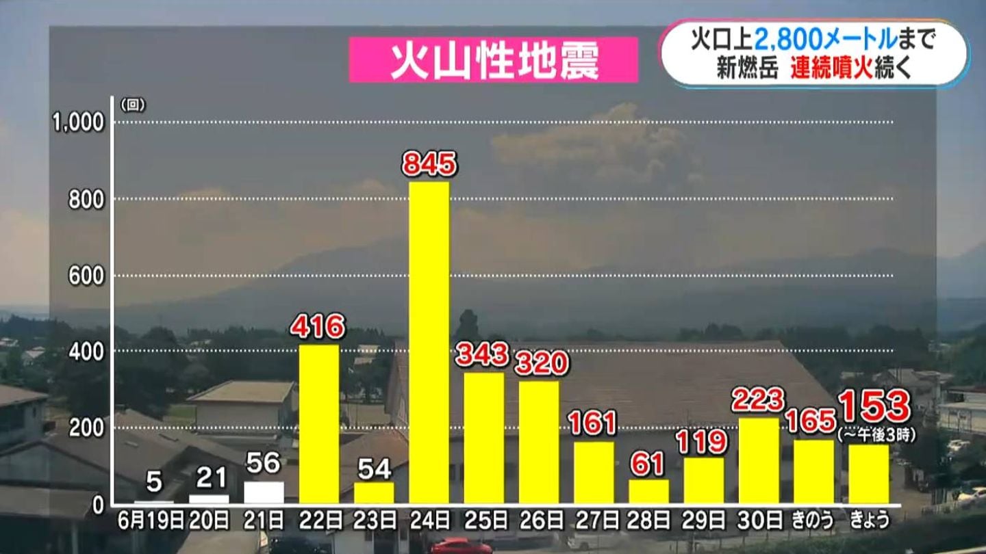気象台によりますと、先月22日以降の火山性地震の回数は、先月24日の845回をピークに、きょう2日も午後3時までに153回観測されています。