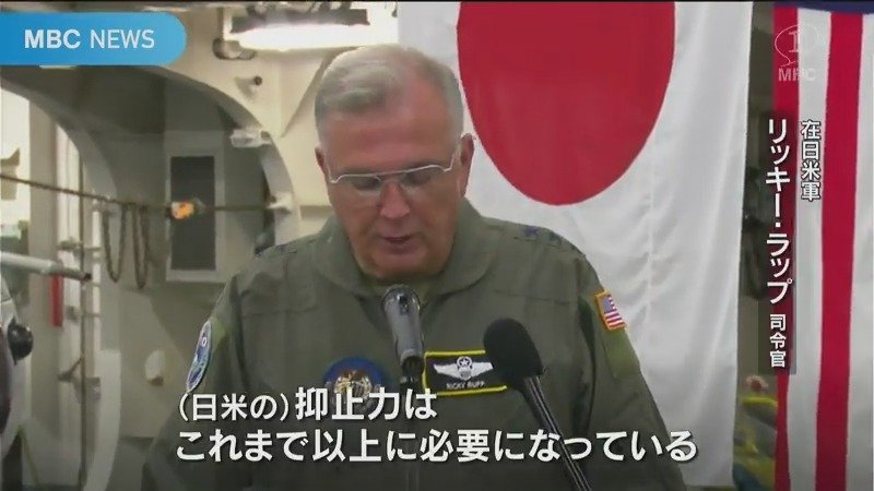 (在日米軍リッキー・ラップ司令官)「(日米の)抑止力は、これまで以上に必要になっている」「我々は挑発的な勢力を抑止するために訓練し、自由を守るために同じ考えを持つ国と協力し続ける」
