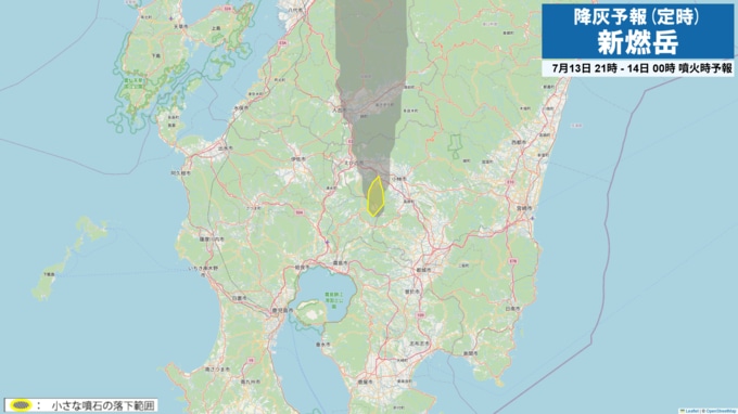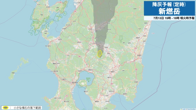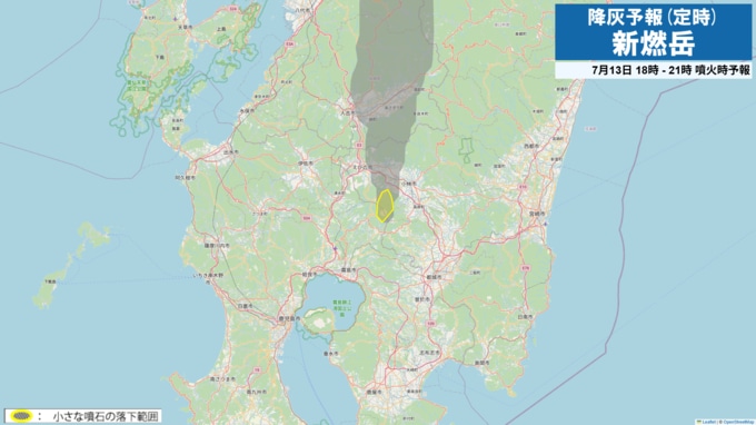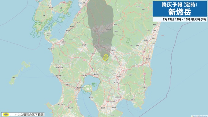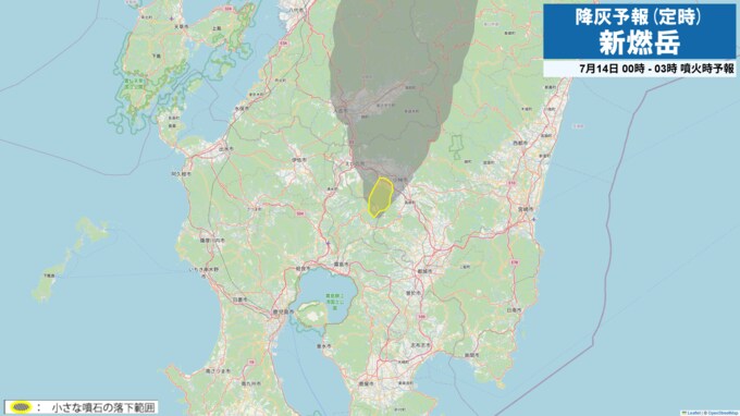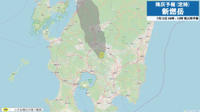 新燃岳降灰予報(定時)発表時間 2025年07月13日 08時00分