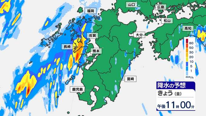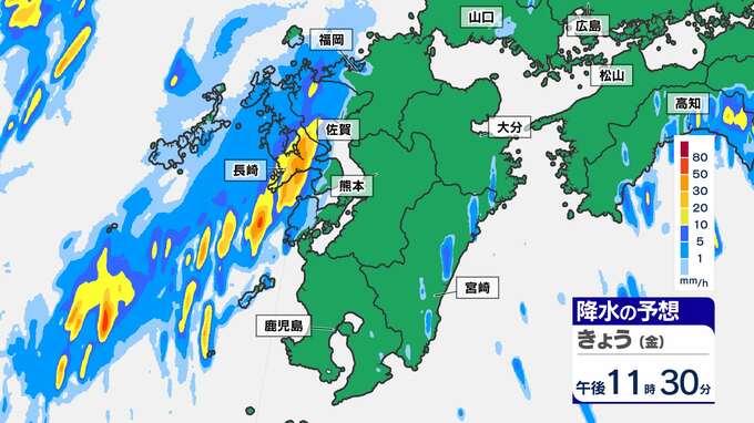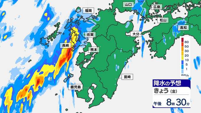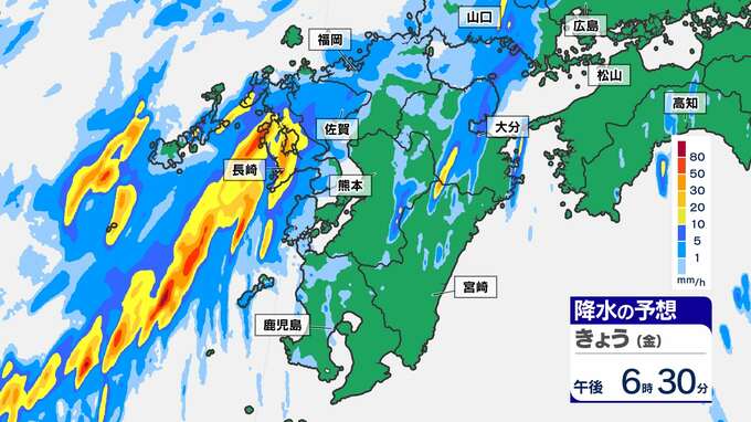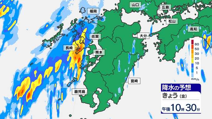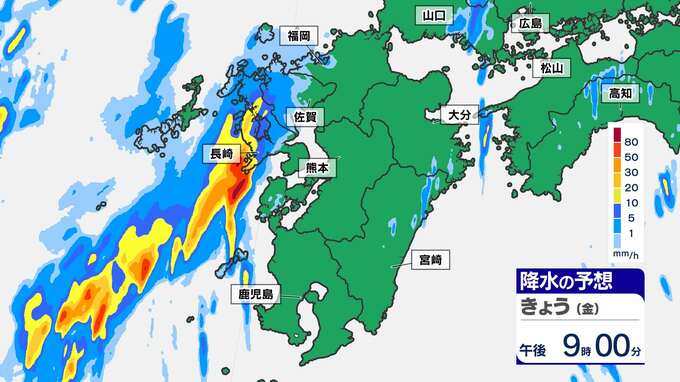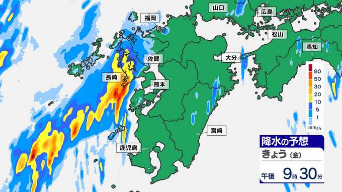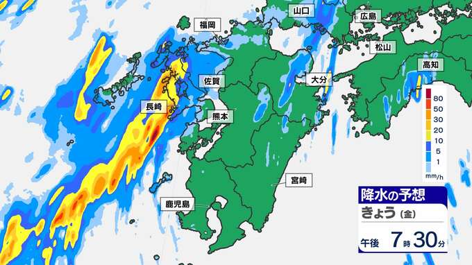 【大雨情報】「線状降水帯」予測情報 長崎・佐賀に【30分ごとの雨のシミュレーション・警報級の可能性地域】福岡・佐賀・長崎・大分・熊本・宮崎・鹿児島