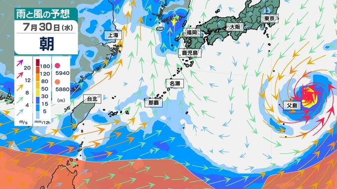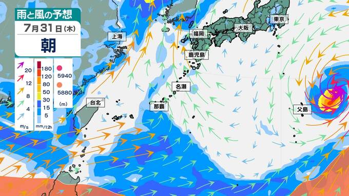 【トリプル台風】 台風9号「関東方面へ」台風7号「沖縄奄美が強風域に」台風8号「九州南部へ」【雨風シミュレーション25日(金)~8月4日(月)】