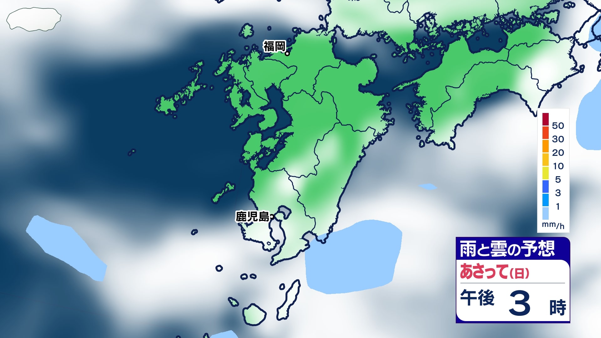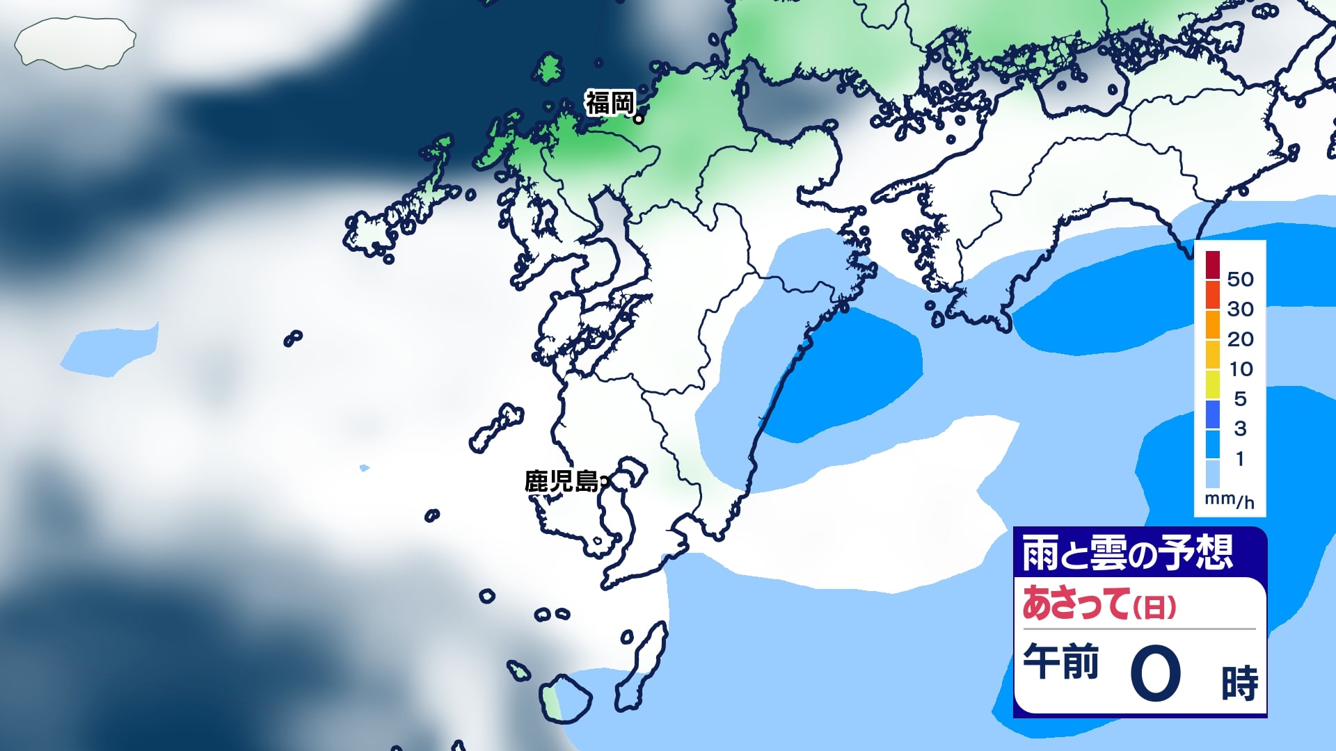 あす19日(土)は、鹿児島・宮崎は雨でしょう。九州北部でも雨雲がかかる所がありそうです。