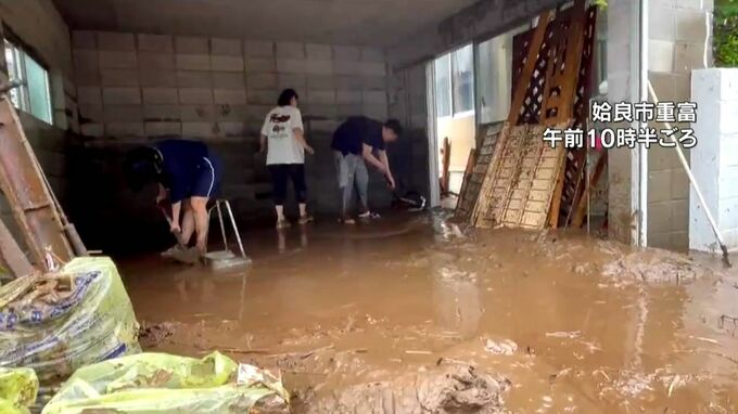 観測史上最大の雨 再び大雨のおそれ「土砂災害に厳重警戒を」 鹿児島 2025年8月8日(金) 19:30 国内 県内はきょう8日、線状降水帯が2度発表される記録的な大雨となり、霧島市では一時、大雨特別警報が発表されました。姶良市では、崩れた土砂が住宅を直撃し、住人1人と連絡がとれなくなっています。県本土では8日未…