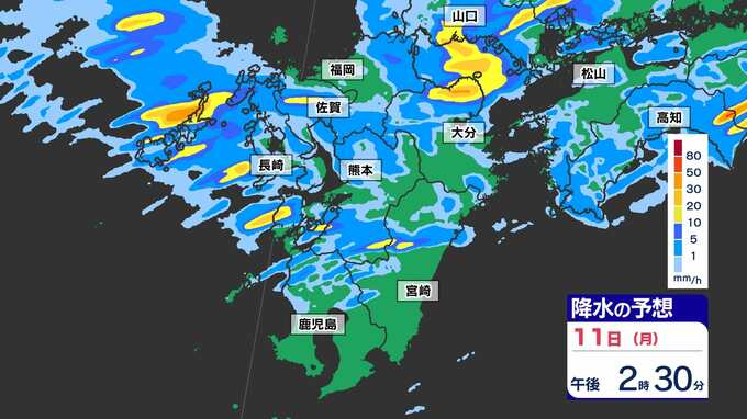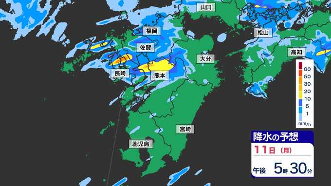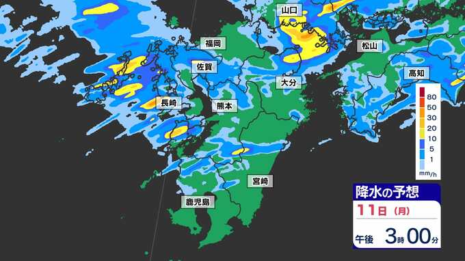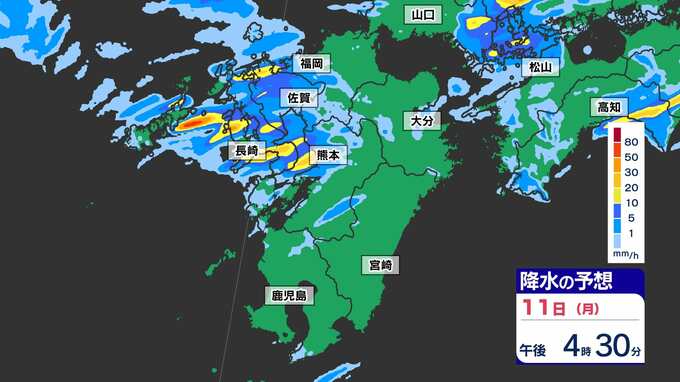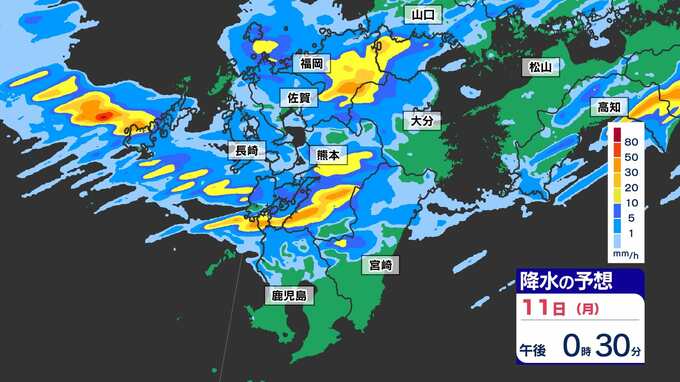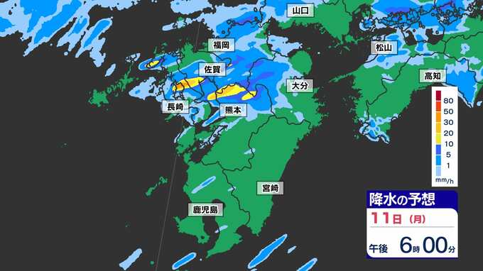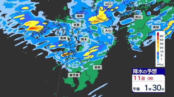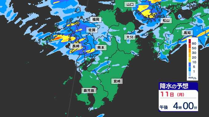 【九州 大雨情報】線状降水帯はゆっくり南下「大雨と突風に関する情報」気象台発表詳しく 熊本県に大雨特別警報【雨のシミュレーション11日(月祝)】福岡・佐賀・長崎・大分・熊本・宮崎・鹿児島 2025年8月11日(月) 04:57 国内 天気