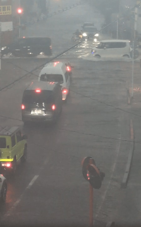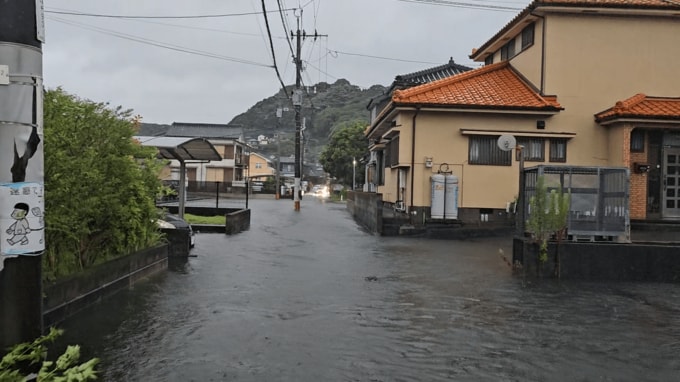 鹿児島市清和3丁目、午後6時ごろの様子です。住宅地の道路が広い範囲で冠水しています。撮影した男性によると、「水面は膝上まできており、車は通行できず警察か消防の方も見にきていました。近くの保育園や老人施設の方が帰宅困難になっていたようです。」とのことです。