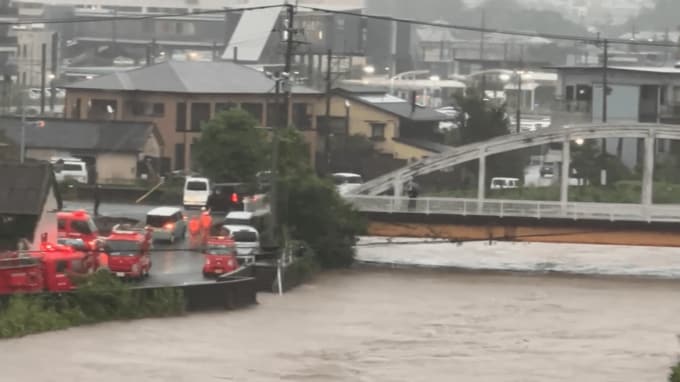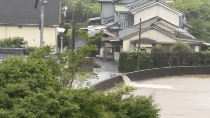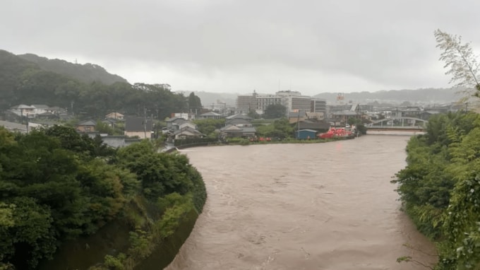 撮影した人によると、「家の裏手の川が氾濫しています。加世田の市街地や鹿児島市に仕事に行っている人は帰れない状況だそうです。ここに住み始めて25年、こんな事初めてです。」と話しています。