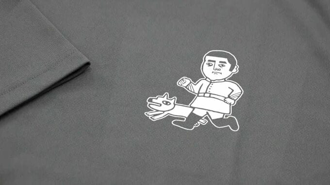 火山灰をイメージした色に、西郷隆盛や桜島をモチーフにしたイラストが描かれています。