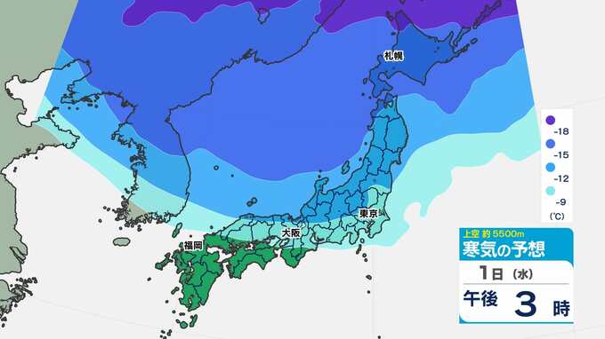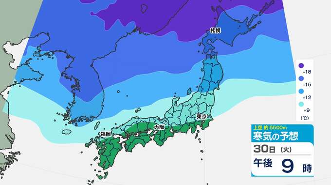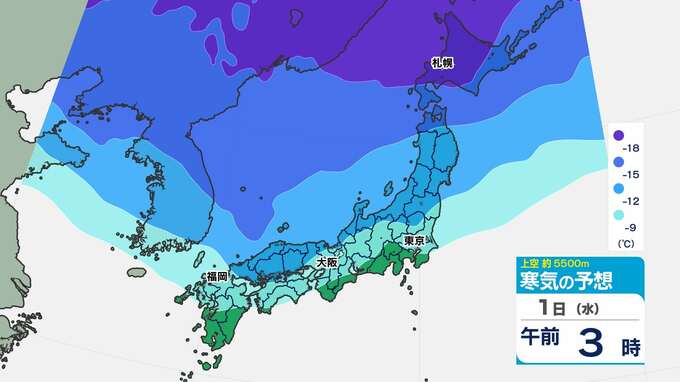 【東京首都圏 ゲリラ雷雨のおそれ】あす10月1日(水)「傘を必ず」雨で肌寒い「長袖がいいかも」【雨シミュレーション / 週間予報】「警報級の大雨の可能性」東京・神奈川・埼玉・千葉・群馬・栃木・茨城 2025年9月30日(火) 18:00 国内 天気 寒気のシミュレーション30日(水)~10月2日(木) 上空約5500mには、東日本には氷点下12℃以下の、この時期としては強い寒気が流れ込むでしょう。上空の寒気と地上との気温差が大きくなるため、大気の状態が不安定になります。