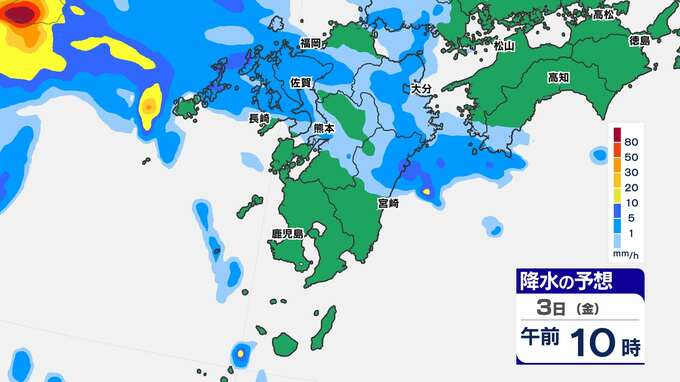 【秋雨前線 北上】3日(金)4日(土)まとまった雨 あすは必ず傘を持って!「雨はいつから どこで?」【雨と発雷確率のシミュレーション / 週間予報】福岡・佐賀・長崎・大分・熊本・宮崎・鹿児島 2025年10月2日(木) 12:10 国内 天気 雨のシミュレーション3日(金)~4日(土) 九州北部では、朝から雨が降り出しそうです。九州南部は夜から雨でしょう。雨のシミュレーションは画像で確認できます。