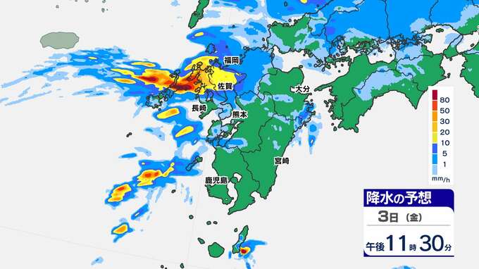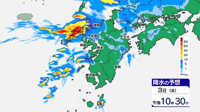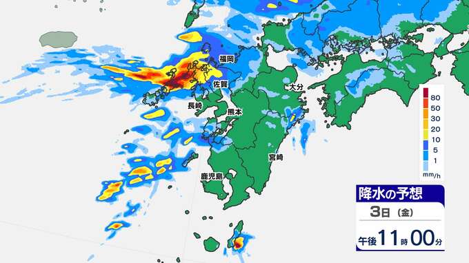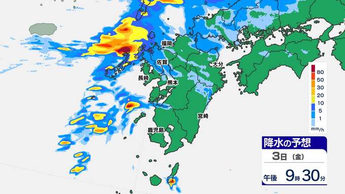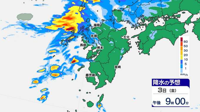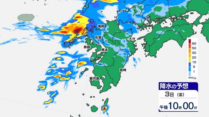 【大雨情報】長崎県に線状降水帯予測 熊本120ミリ 鹿児島100ミリ【雨と発雷確率のシミュレーション / 10日間予報】福岡・佐賀・長崎・大分・熊本・宮崎・鹿児島 2025年10月3日(金) 13:30 国内 天気