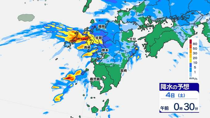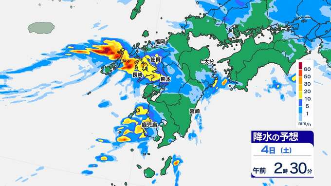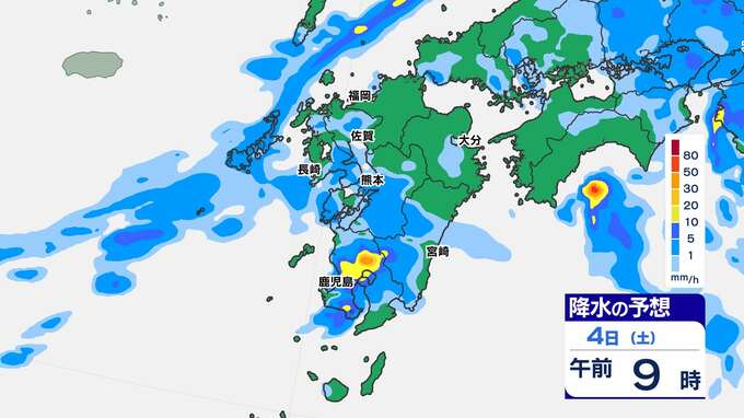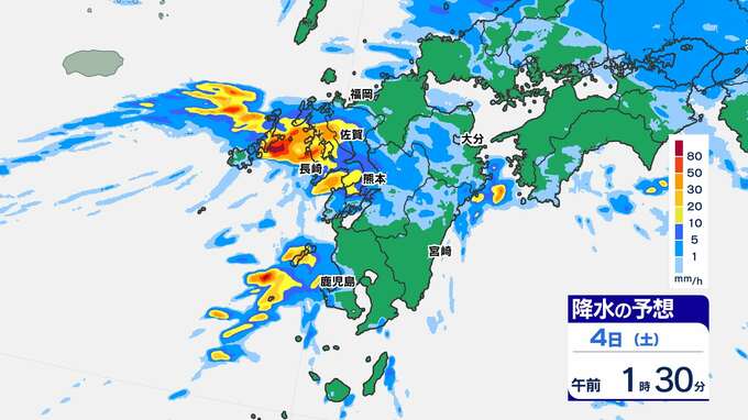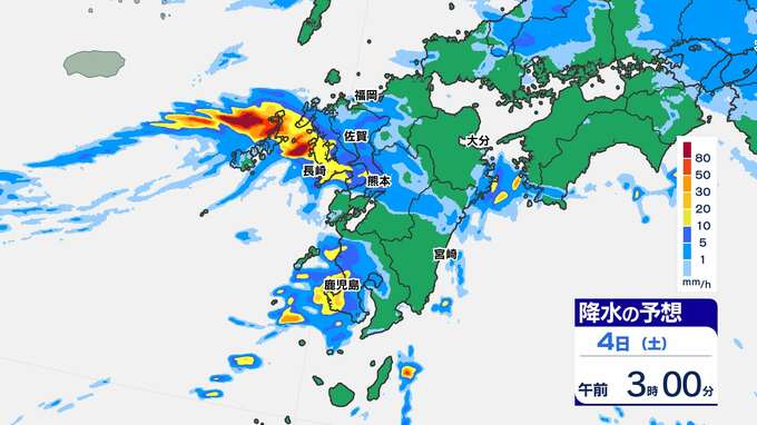 【大雨情報】長崎県に線状降水帯予測 熊本120ミリ 鹿児島100ミリ【雨と発雷確率のシミュレーション / 10日間予報】福岡・佐賀・長崎・大分・熊本・宮崎・鹿児島 2025年10月3日(金) 13:30 国内 天気 ここより1時間ごとの予想になります