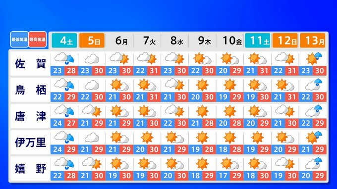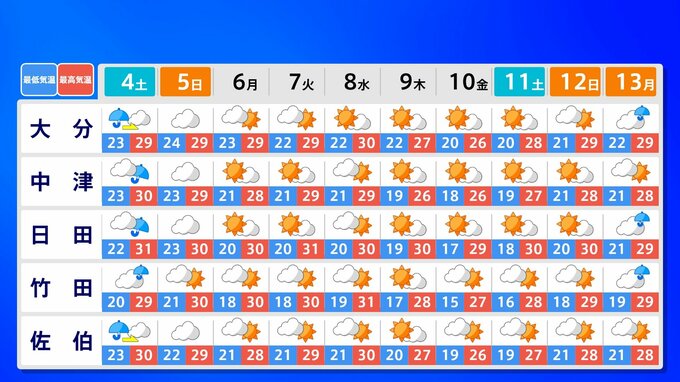 【大雨情報】長崎県に線状降水帯予測 熊本120ミリ 鹿児島100ミリ【雨と発雷確率のシミュレーション / 10日間予報】福岡・佐賀・長崎・大分・熊本・宮崎・鹿児島 2025年10月3日(金) 13:30 国内 天気 10日間予報(福岡・佐賀・長崎・大分・熊本・宮崎・鹿児島) 福岡県の場合、福岡・北九州・飯塚・久留米・大牟田について、13日(月祝)まで画像で掲載しています(他県も5地点掲載)。来週末の3連休の計画に役立ててください。なお、6日(月)は中秋の名月となっています。