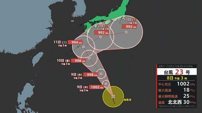 台風23号 鹿児島県は「強風域」のおそれ