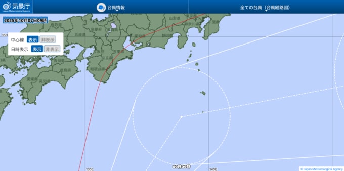 10日午前9時には日本の東の北緯33度50分、東経148度20分を中心とする半径300キロの円内に達する見込みです。