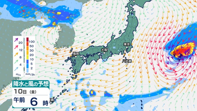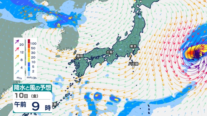 【台風情報】台風22号 9日に最大瞬間風速65m 伊豆諸島など関東甲信「暴風・高波に厳重警戒」雨と風シミュレーション・暴風域に入る確率・気象庁の進路予想【2025】 2025年10月7日(火) 11:47 国内