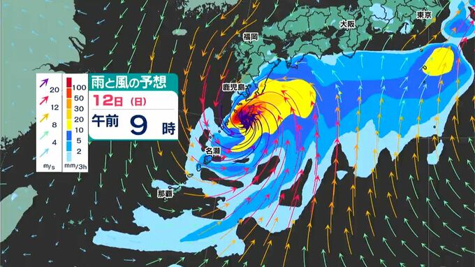 11日になると、台風本体の雨雲が奄美、十島村、種子・屋久の順にかかり、12日の午前中には種子・屋久で一段と活発な雨雲がかかる予想となっています。12日は運動会が予定されている学校もあるかと思います。12日は要注意です。