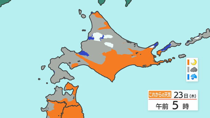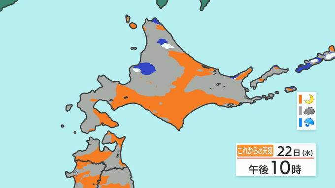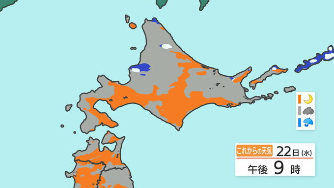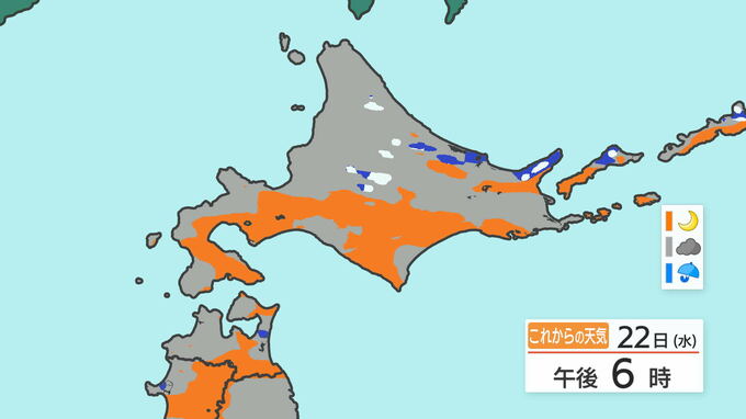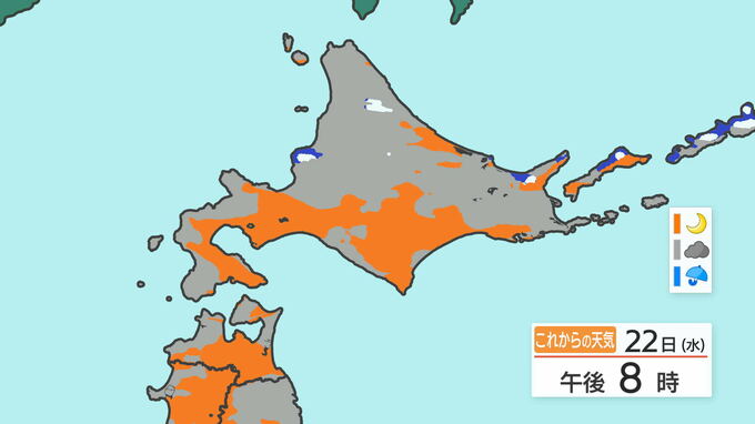 秋雨前線は南下傾向です、昨夜と比べると晴れるエリアが広がり日本海側を中心に観測できそうです。太平洋側は曇りや雨ですが、あす夜は晴れる所が多くなりそうです。《22日午後6時~翌23日午前5時の1時間ごとの天気》をエリアごとに画像で掲載しています。