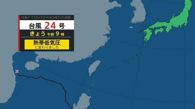 「台風24号」は午前9時に、南シナ海で「熱帯低気圧」に変わりました。ただ次の「台風のたまご=熱帯低気圧」が、沖縄県の石垣島付近で発生しています。23日(木)~28日(火)の《雨風シミュレーション》を画像で掲載しています。