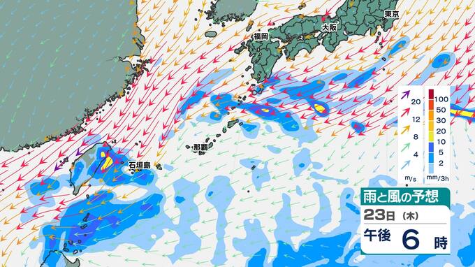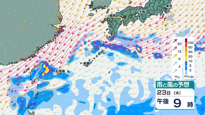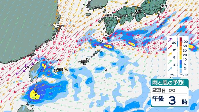 新たにできた「熱帯低気圧=台風のたまご」とみられる「反時計回りの渦」は、石垣島付近から台湾付近に進み、あまり発達することはなさそうです。日本に目を移すと、秋雨前線の影響で25日(土)は西から下り坂、26日(日)は広く雨が降るでしょう、シミュレーションでは、26日(日)は近畿~関東で活発な雨雲が予想されています。