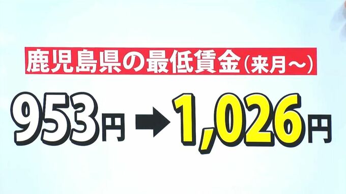 企業が労働者に最低限、支払わないといけない賃金=最低賃金。現在、鹿児島県は1時間あたり953円ですが、来月1日には初めて1000円を上回り、1026円に引き上げられます。