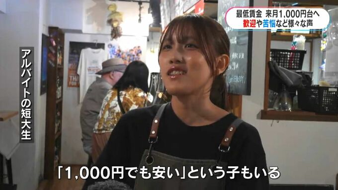 (アルバイトの短大生)「友達も1000円以上でアルバイトを探す子が多い。『1000円でも安い』という子もいる。『1200円じゃないとバイトしたくない』という子もいる」
