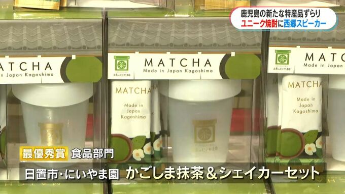 今年出品された111品から、審査の結果、最優秀賞の県知事賞に輝いたのは、食品部門が日置市のにいやま園のかごしま抹茶&シェイカーセット、工芸・生活用品部門が薩摩焼窯元紫陶のブレスレットでした。