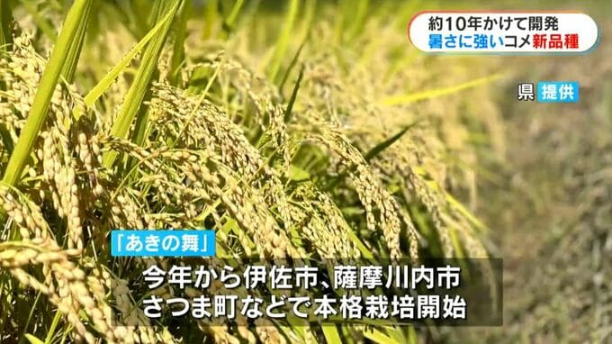 「あきの舞」は県が2013年から開発を進めていた品種で、今年から伊佐市、薩摩川内市、さつま町などで本格栽培が始まりました。