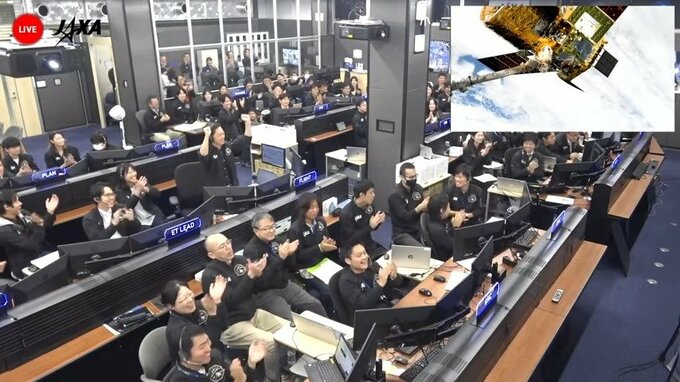 成功が伝えられると、作業を見守っていた地上の管制室では、JAXAなどの関係者から拍手が起こりました。