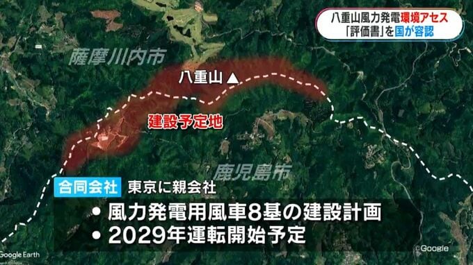 鹿児島市と薩摩川内市にまたがる八重山周辺で計画されている風力発電建設について、国は事業者が提出した環境アセスメントの「評価書」を容認する通知を出しました。