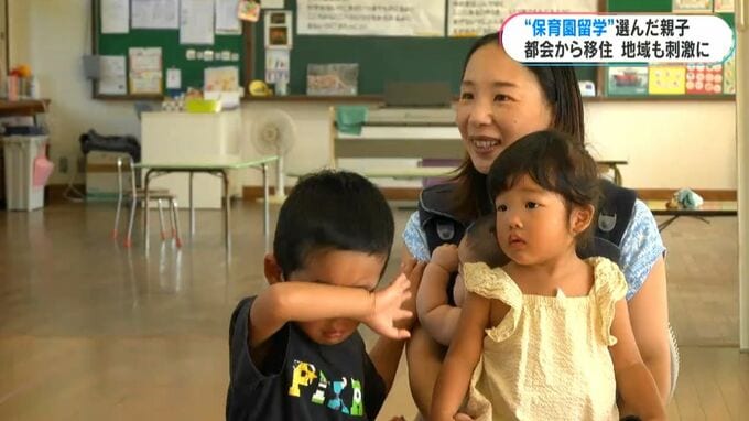 りょうくんとみなみちゃんは、今回が初めての保育園留学。涙が止まらないりょうくん。しばらくお母さんも園で様子を見守ることにしました。