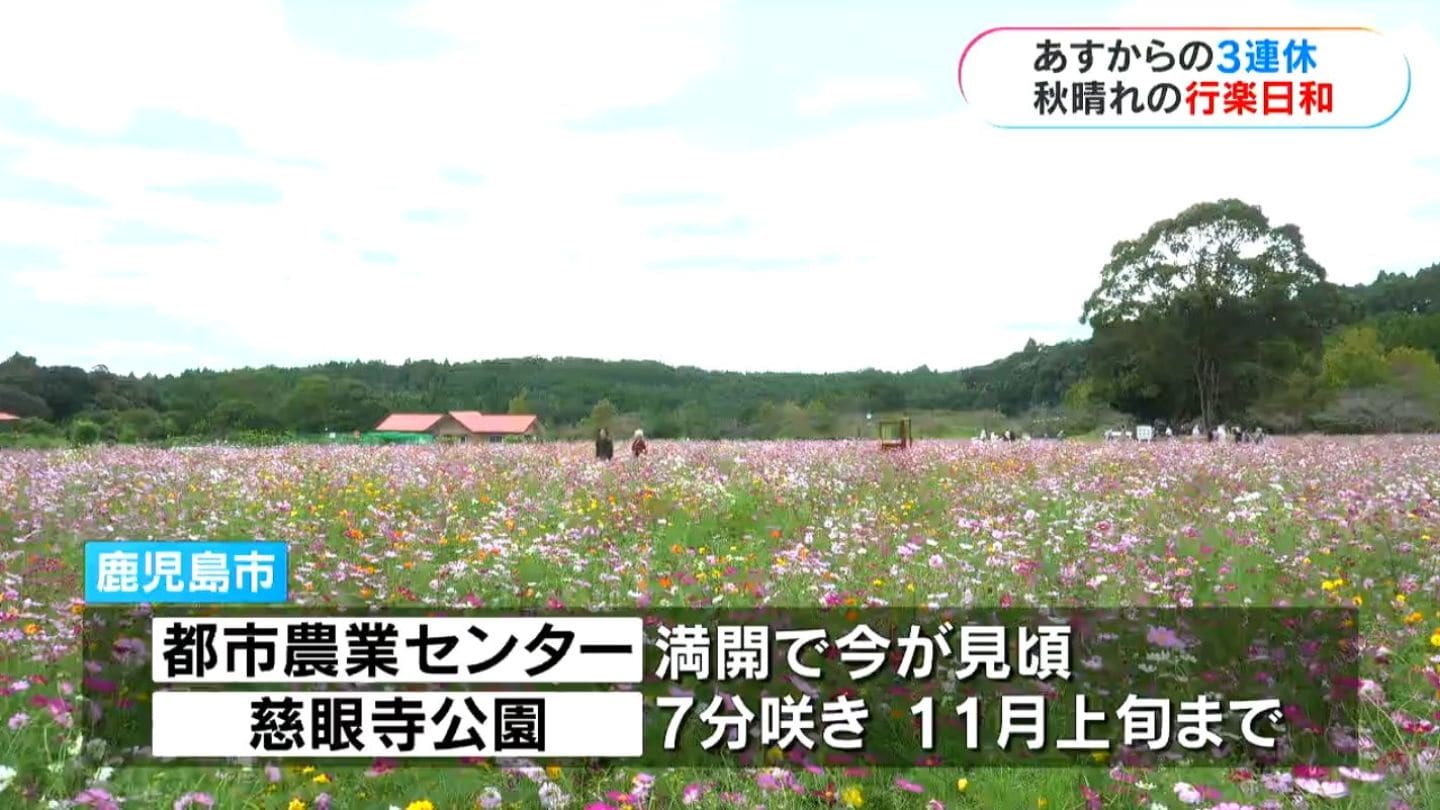 そして各地でコスモスが見ごろを迎えています。鹿児島市の都市農業センターは満開で今が見ごろ。慈眼寺公園は7分咲きで、11月上旬まで楽しめそうです。