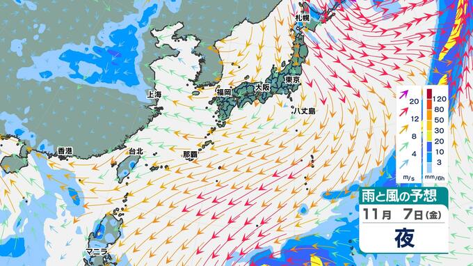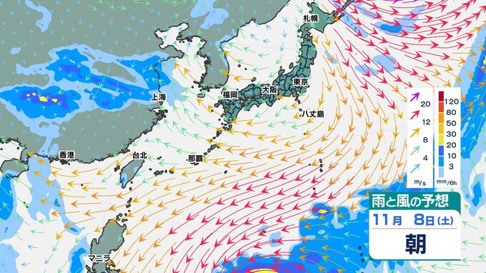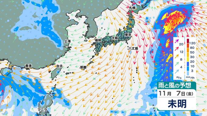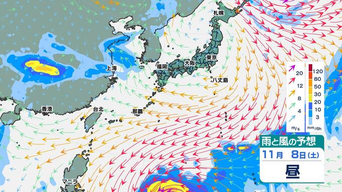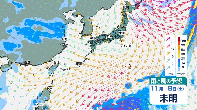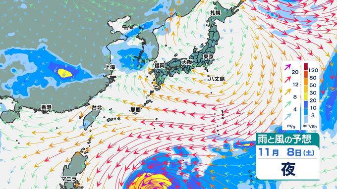 台風26号は、9日(日)~10日(月)はフィリピン付近、12日(水)頃には台湾付近に予想されています。その後、日本付近に北上し、偏西風に乗って東に進むと考えられスピードを上げるとみられますが、「渦」は崩れ『雨雲のかたまり』が日本を通過していきそうです。