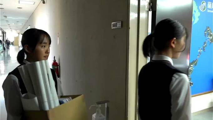 市役所を訪れたのは、川内高校2年の羽島奈穂さんと中島望花さんです。