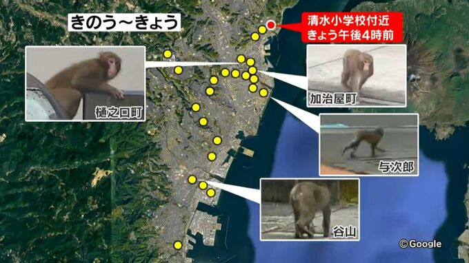 鹿児島市によりますと10日から11日にかけて市内ではサルの目撃情報が25件寄せられているということです。