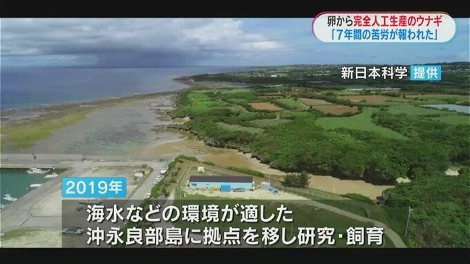 2019年からは海水などの環境が適した沖永良部島に拠点を移して研究や飼育を行っていて、今年ようやく、完全養殖した食用のウナギ100尾ほどを育てることに成功したのです。