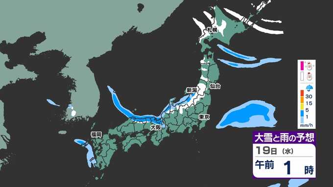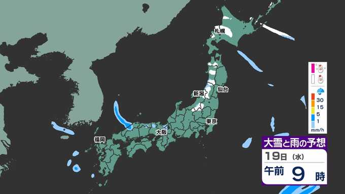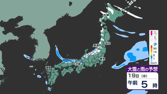 19日(水)午後の「雨と雪のシミュレーション」