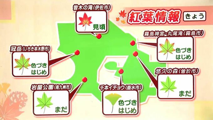 各地の紅葉情報です。今「見ごろ」を迎えているのは、伊佐市の曽木の滝です。